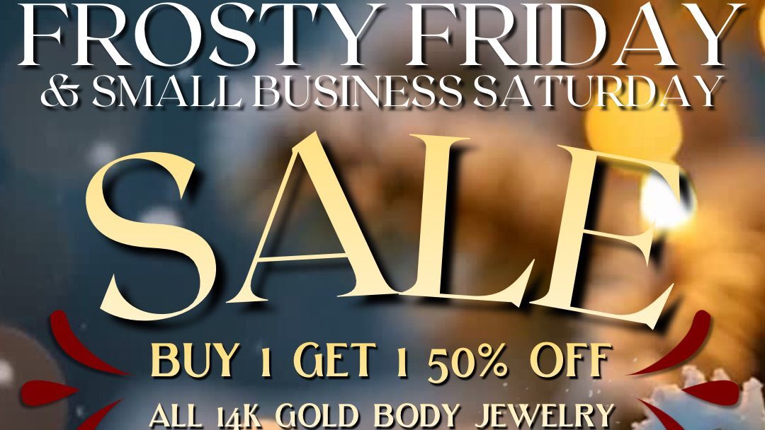 Come out and see us on Frosty Friday & Small Business Saturday for BOGO 50% Off any of our 14k Gold Jewelry! Including Permanent Bracelets, Anklets, & Necklaces!