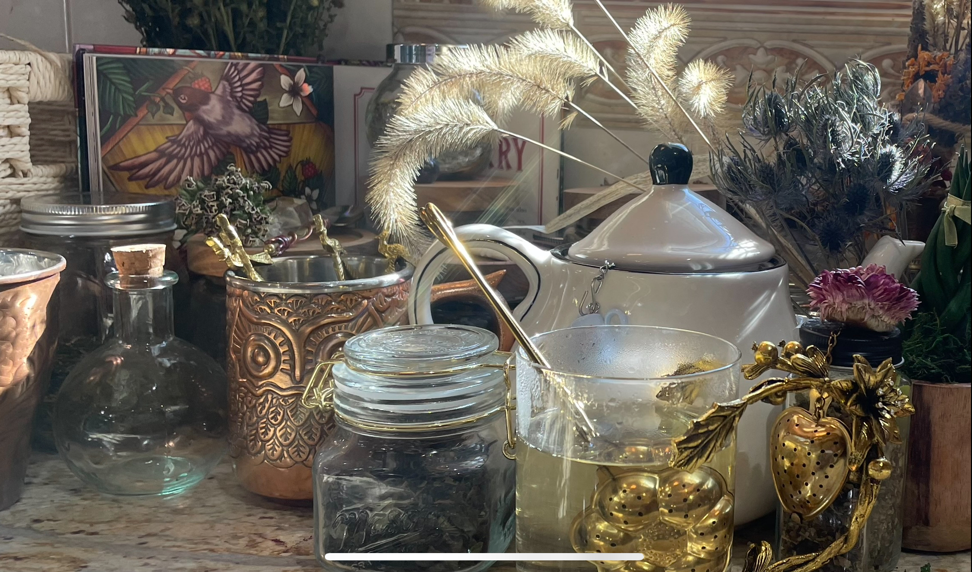 Enjoy a second “Intentional Tea Time” custom tea, in ceremony. The teas and herbs used in the teas you’ve tasted will be passed around, deeply inhaled, and discussed as you begin to forge relationships with herbs and gain a deeper understanding of their health benefits and metaphysical correspondences in preparation for your tea crafting.
