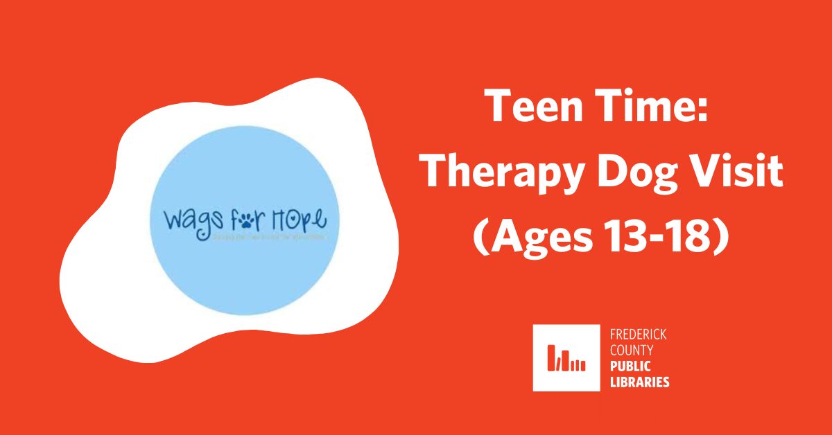 Hang out and de-stress with Therapy Dogs from WAGS For Hope. Stress-relief activities will be provided. Ages 13-18.