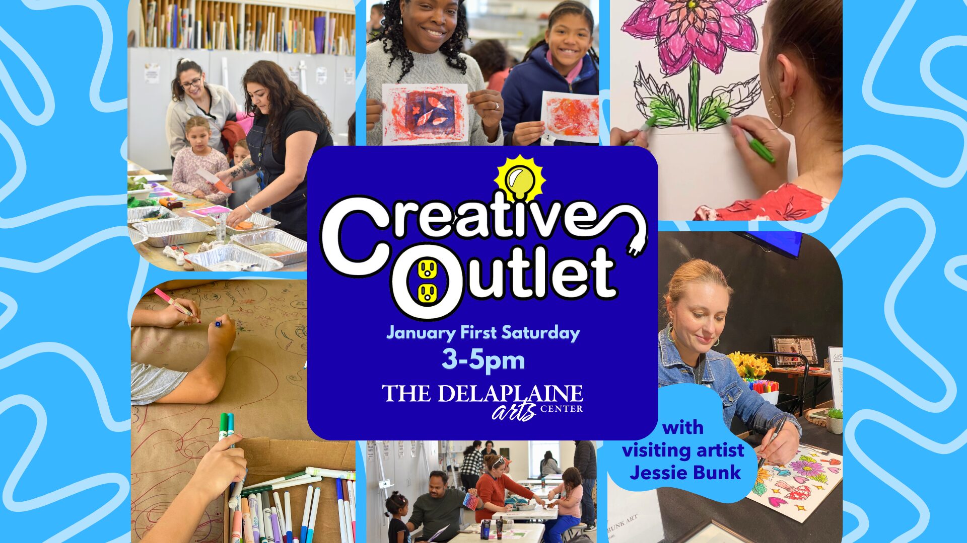 Kids and their adults are invited to drop-in and get creative together in our family open studio to create an artist-inspired project! Bilateral drawing with visiting artist Jessie Bunk. Please, no large groups. FREE, donations encouraged.
